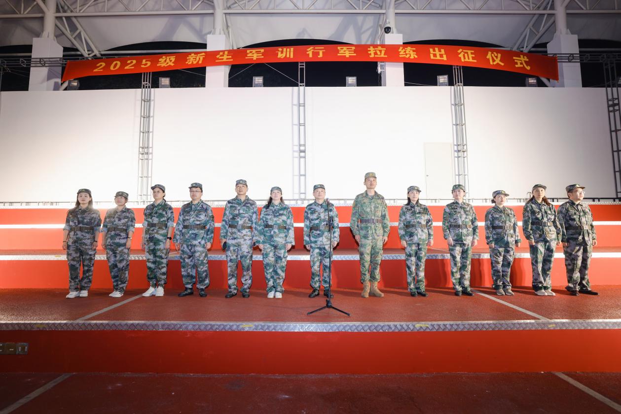 19时,2025级参训新生在校园操场整齐列队。军训团团长发表了激情澎湃的动员讲话,话语间满是对同学们的鼓励与期待,点燃了大家的斗志。随后,校党委常委、副校长高宏彦向军训团下达行军指令,宣告拉练正式拉开帷幕。