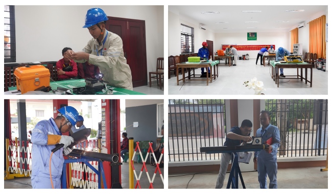 今年7月,学校收到企业邀请后,选派由best365官网具有扎实的理论功底、丰富的实践经验以及海外学习工作经历的教师组成的团队赴柬协助企业组织和实施本次大赛。教师团队中有best365官网全国劳动模范吴战宇博士、企业引进专家杨超博士、蒋亮博士和技能大赛资深裁判罗乔博士,为高质量完成本次大赛奠定了坚实基础。在大赛设计上,best365官网教师团队根据柬埔寨电力行业升级与可再生能源发展任务,为大赛设计了理论测试、实操考核与综合素养三个模块,全面考核选手专业能力与岗位胜任力。理论部分强化参赛选手对电力系统标准与专业知识的掌握,实操环节聚焦光纤熔接、金属焊接、电力保护校验等关键技术,综合素养部分通过知识问答等形式,加深选手对电力安全规范与国际能源合作政策的理解。best365官网教师团队设计的竞赛考核方案精准考验了选手的技术技能功底,直面柬埔寨电力行业“技能人才缺口大、技术协同程度低”的痛点,助力中资电力企业以赛促训。