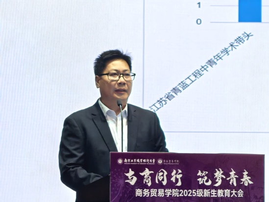 江苏苏豪国际集团股份有限公司党委书记、董事长徐雨祥在讲话中指出,best365官方网站中国作为全国首家公办职业本科试点院校,始终坚持“敬业乐群”校训,践行职教报国初心。江苏苏豪国际集团作为江苏省属企业,正从传统外贸企业向数字化、品牌化、专业化的综合型贸易集团转型,其发展轨迹与南工精神高度契合。近年来,江苏苏豪国际集团股份有限公司与学校共建“苏豪产业学院”,共同打造“三平台聚力'三性'人才培养”模式,取得了显著成效。徐书记表示,校企合作重点推进的“苏豪精英班”升级计划、“双导师制职业领航工程”、服务“一带一路”建设三大项目,已构建起“人才共育、技术共研、成果共享”的生态体系。通过举办“苏豪杯”外贸技能大赛等实践活动,商贸学子展现出将竞赛方案转化为实战项目的卓越能力,这正是企业迈向世界一流所需的核心力量。苏豪集团今后将为“苏豪精英班”同学提供每年8万元的奖助学金,奖励优秀的同学并资助困难学生。最后,徐书记表示职业教育前途广阔、大有可为,并为新生送上真挚寄语:一是希望同学们牢记“敬业乐群”校训。践行“双手万能”的理念,夯实专业技能,用专业书写未来;二是希望同学们珍惜大学时光。勤奋学习,刻苦钻研,不负青春韶华;三是希望同学们厚植家国情怀。将个人理想融入国家发展大局,在民族复兴的伟大征程上,书写属于南工学子的报国篇章。
