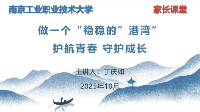为协同家校力量,助力新生成长,10月29日晚,电气工程学院特邀学校心理健康教育中心丁庆如老师,为2025级新生家长举办了一场主题为 “做一个‘稳稳的’港湾:护航青春,守护成长” 的线上家长课堂。活动虽在云端,但互动热烈,引发了家长的深入思考与共鸣。