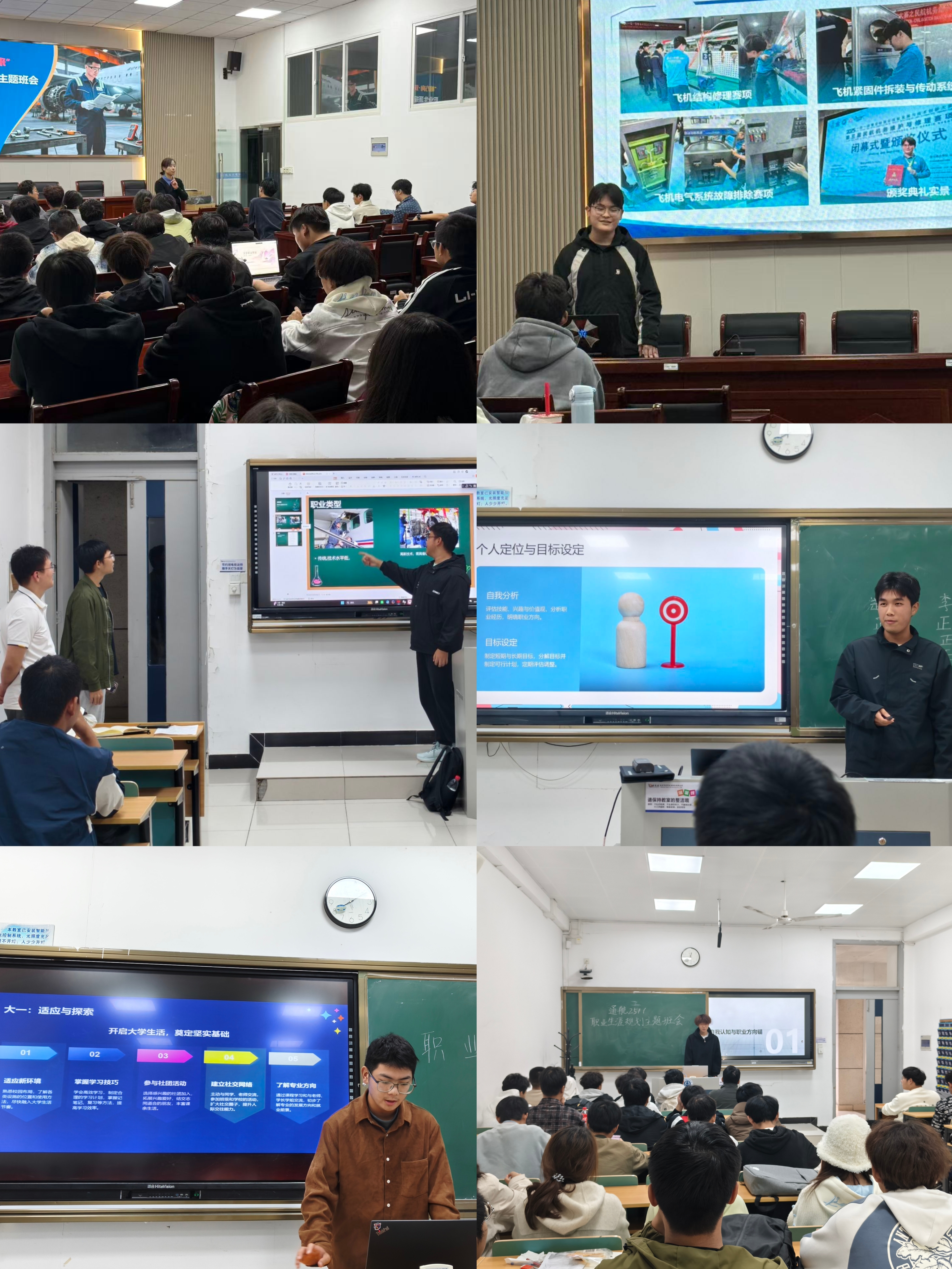 为引导广大新生更好适应大学生活,学会规划职业发展路径,走好生涯启航第一步,10月22日至10月29日,由学院党委指导、“筑梦引航”辅导员工作室承办,航空工程学院在2025级新生班级中组织开展了职业生涯规划主题班会活动。此次活动旨在帮助新生从入学伊始树立个人理想、明确奋斗目标,为接下来的四年大学时光绘制清晰的实践蓝图。