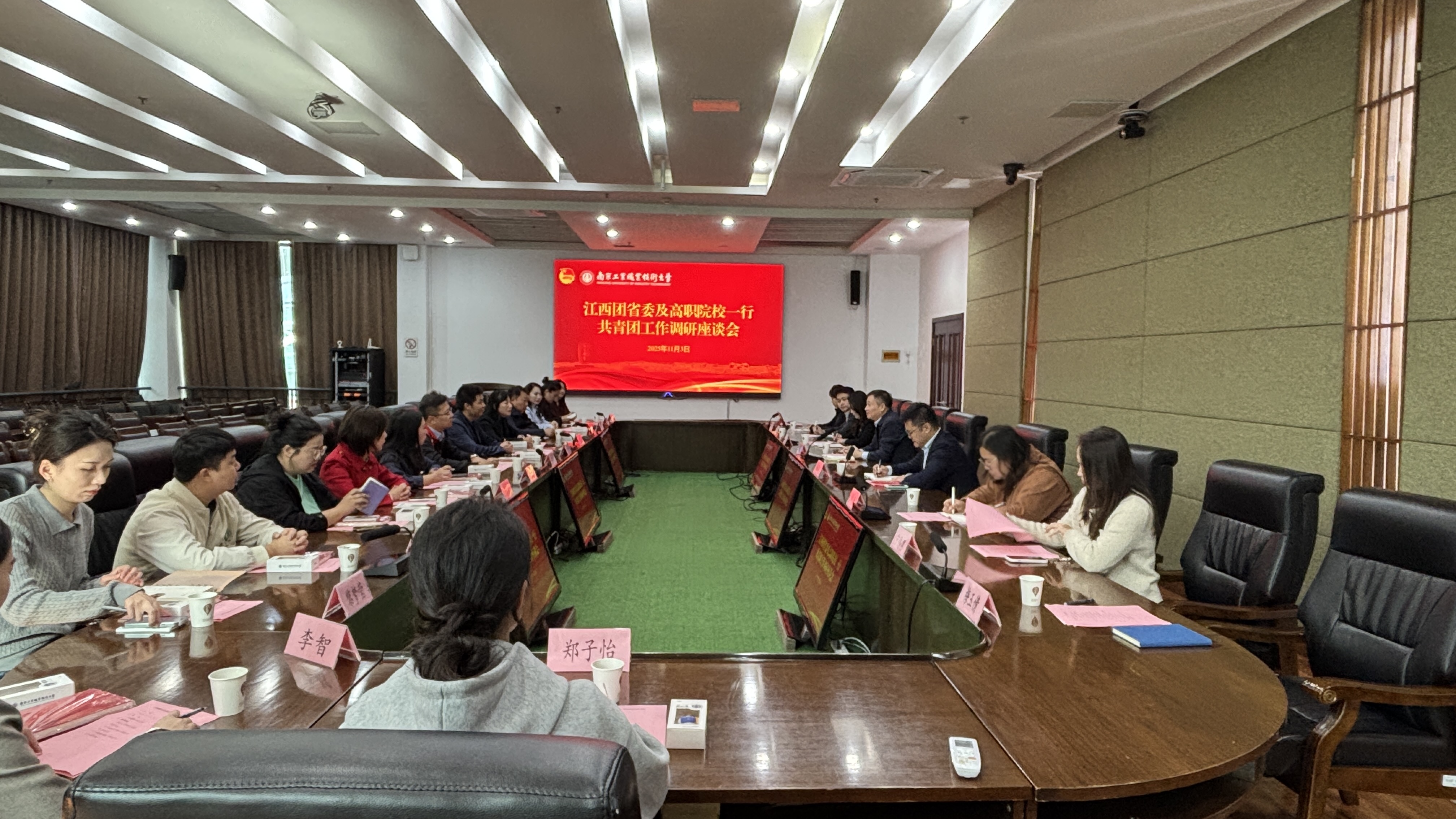 11月3日,共青团江西省委学校部部长甘小平带队,与江西省13所高职院校共青团组织负责人一同来校考察调研。学校党委常委、副校长高宏彦、校团委全体同志参加调研交流活动。