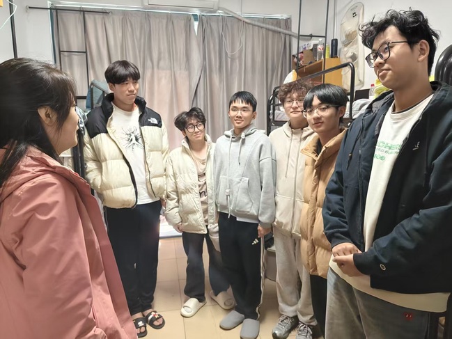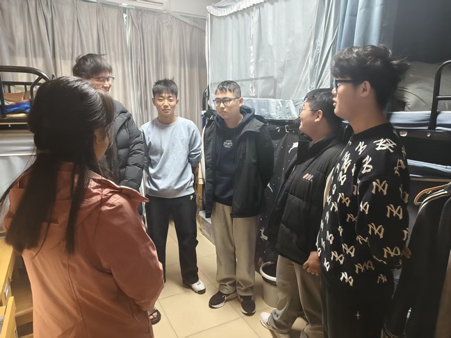 除环境与安全外,学院更关注学生的学业发展与心理状态。老师们与同学们亲切交流,了解学习进度与实际困难,引导大家合理规划时间、平衡学业与生活,并强调遵守宿舍管理规定对集体生活质量的重要性,要营造积极向上的居住与学习氛围。