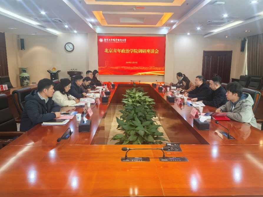 11月25日上午,北京青年政治学院党委常委、副校长刘炳全一行来校交流调研。学校党委常委、副校长高宏彦,共青团江苏省委高校部部长卜路出席活动,学生工作处、团委等部门负责人和辅导员代表参加交流。