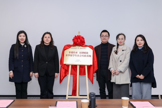 随后,魏萍与张学锋共同为“非遗传承 双创赋能”来华留学生实践教育基地揭牌,标志着校地在非遗传承与双创融合领域迈出实质性一步。