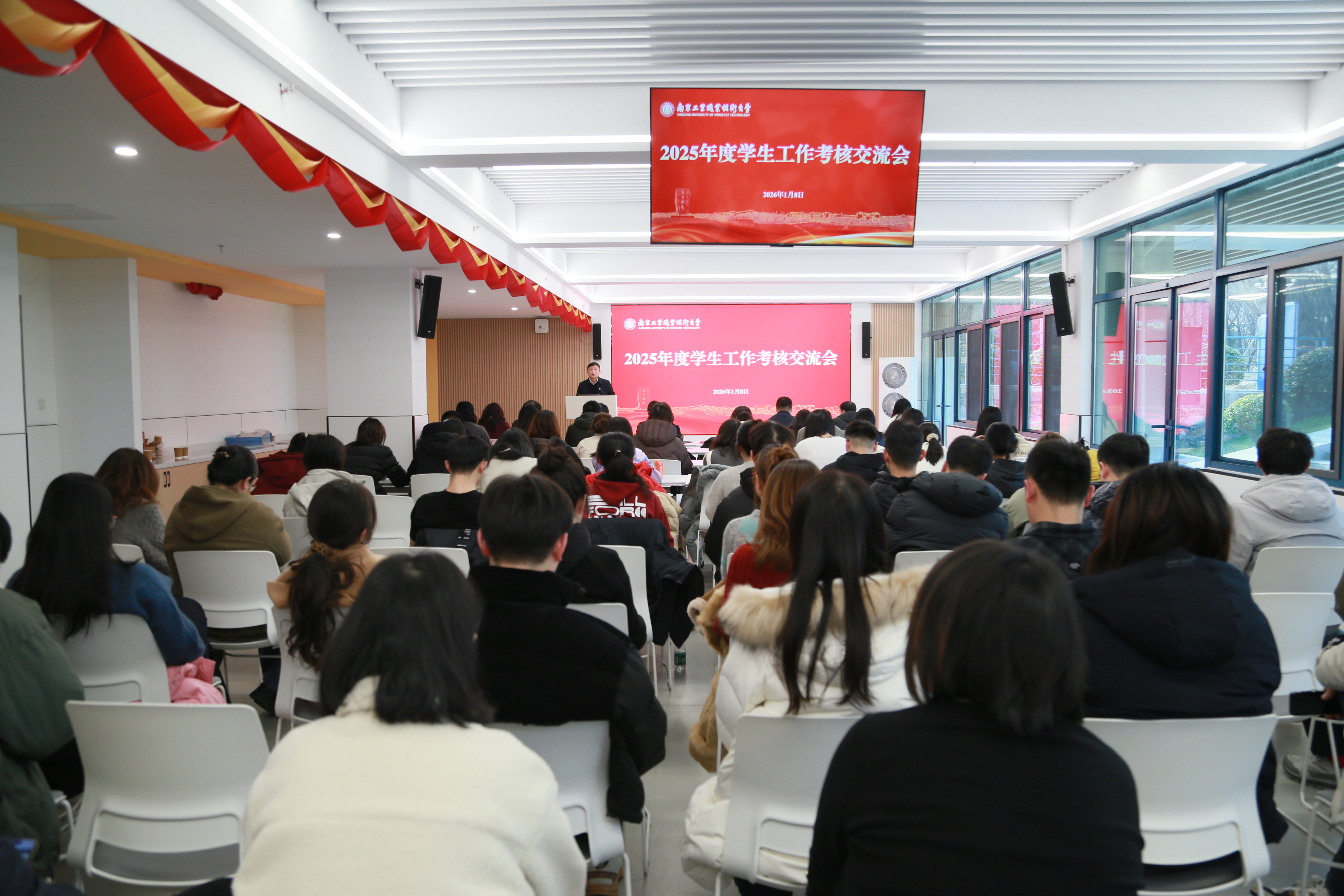 交流环节,各学院依次登台,围绕2025 年度学生工作进行总结交流。各学院紧扣立德树人根本任务,立足学院专业特色与学生特点,以详实的数据、鲜活的案例和创新的思路,全面展示了过去一年在思想引领、学生培养、服务保障等方面的扎实举措与显著成效。在日常工作中,各学院始终秉持夯实基础、筑牢防线的理念,通过强化日常教育引导工作、深化内涵式学风建设、丰富校园文体活动形式、常态化推进心理健康教育以及稳步落实招生就业工作等举措,为学生的全面发展与健康成长筑牢坚实支撑。在特色工作领域,各学院紧密结合学科优势,精心打造育人品牌,借助党建引领、深耕实践育人路径、聚焦双创赋能发展、创新文化育人模式等具体行动,充分彰显育人特色。