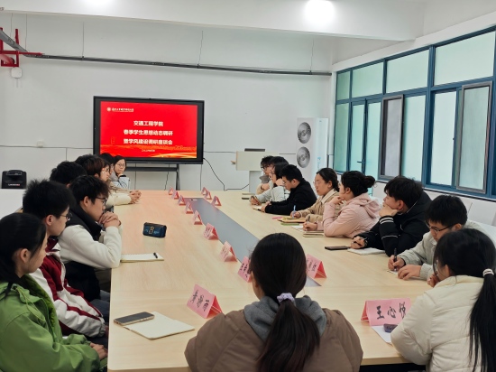 3月11日,交通工程学院在海棠苑党建会议室召开院级学生思想动态调研暨学风建设调研座谈会。学工办主任李秀珊及辅导员王子怡、孟祥水,以及各年级学生代表参会。