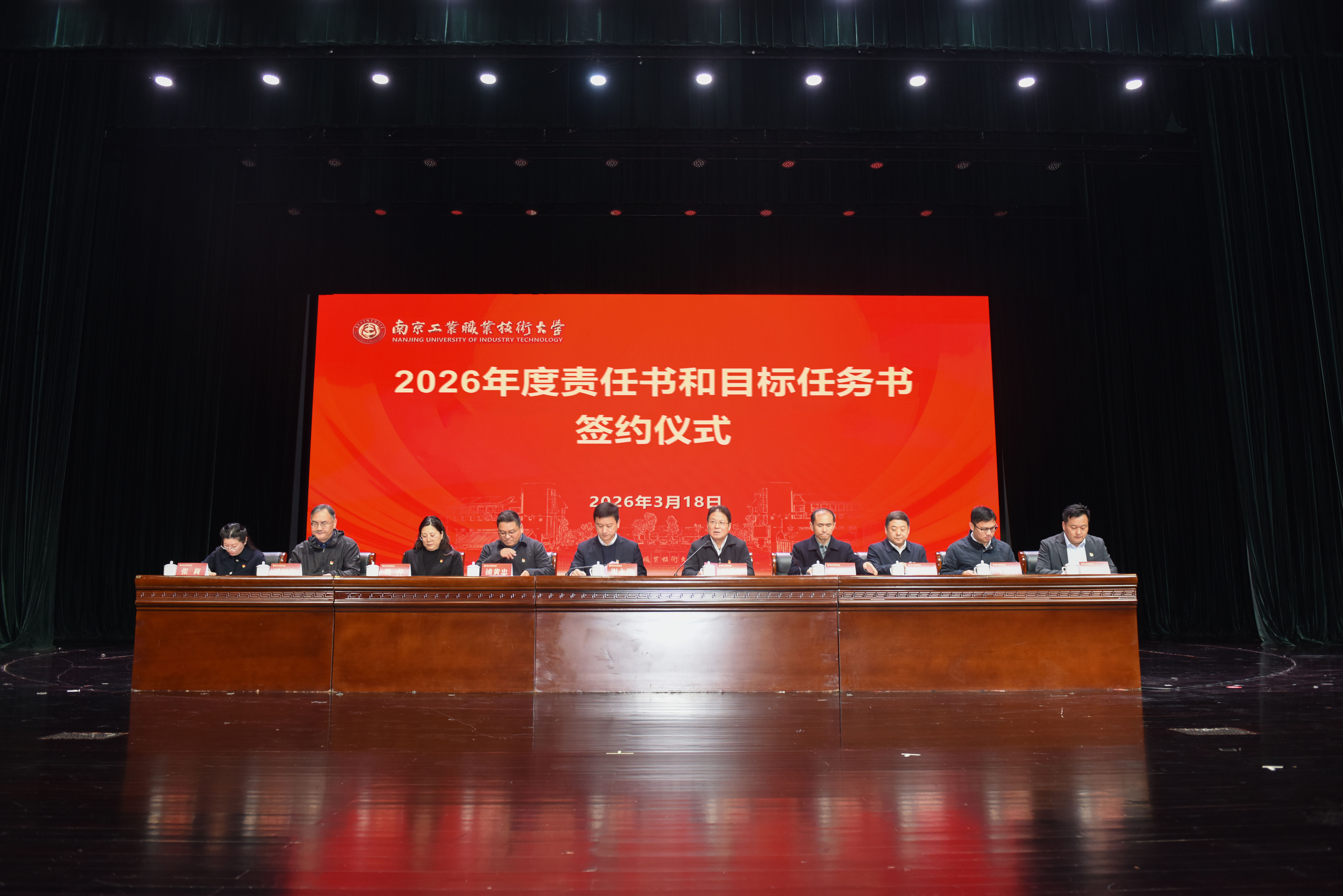 会上,谢永华、何学军分别与学校领导班子成员代表、党组织书记、学院院长、职能部门负责人代表签订《意识形态工作责任书》《安全稳定责任书》《网络安全责任书》《教职工思想政治和师德师风建设工作责任书》和《2026年目标任务书》。