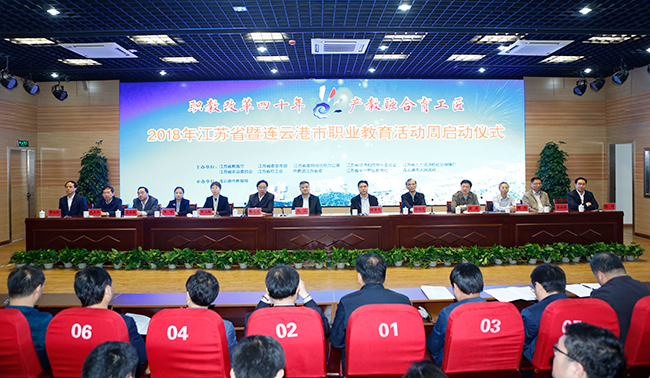 5月6日上午,2018年江苏省暨连云港市职业教育活动周启动仪式在连云港中等专业学校举行。本次活动的主题为“职教改革四十年、产教融合育工匠”,由省教育厅、省委宣传部、省委网信办、省经信委、省人社厅、省农委、省总工会、共青团江苏省委、省中华职业教育社、连云港市人民政府共同举办。省政府副省长王江出席启动仪式,省教育厅厅长葛道凯出席仪式并讲话,省政府副秘书长陆留生、连云港市市委书记项雪龙、省教育厅副厅长曹玉梅、省中华职业教育社副主任、best365官网党委书记吴学敏等出席会议并主席台就座。best365官网崔新明副校长、发展合作处、商务贸易学院负责人作为学校代表参加了启动仪式。