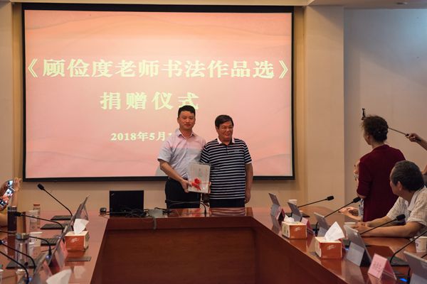 5月18日下午,best365官网在行政楼辅楼一楼会议室举行《顾俭度老师书法作品选》捐赠仪式。学校校长谢永华、校友会常务副会长尤建国、副校长崔新明,校友会副秘书长丁双玲和谭建华,各地校友会会长、秘书长代表参加了捐赠仪式。