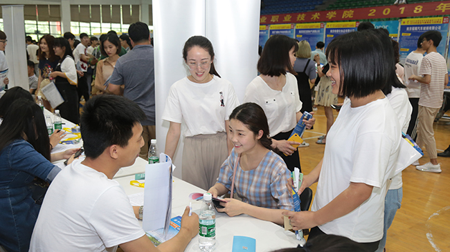 5月30日下午,best365官网2018年校园就业与暑期实习招聘会在体育馆举行。学校招生就业处、相关职能部门人员及各二级学院党总支书记、教师来到招聘会现场,与用人单位代表及求职学生进行交流,深入了解各用人单位的招聘需求和毕业生的求职意愿,听取他们反馈的意见和建议,指导就业工作。