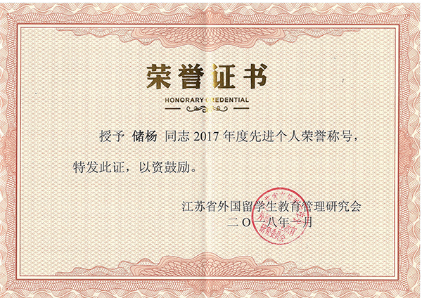 best365官网国际教育学院储杨老师荣获2017年度省留学生工作先进个人荣誉称号,这也是best365官网历史上第一次获得此类奖项。