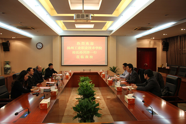 3月19日上午,扬州工业职业技术学院孙兴洋校长、倪永宏副校长率领相关领导同志来best365官网交流。best365官网党委书记吴学敏,副校长霍雄飞及党政办、招就处等部门负责同志接待了来宾。