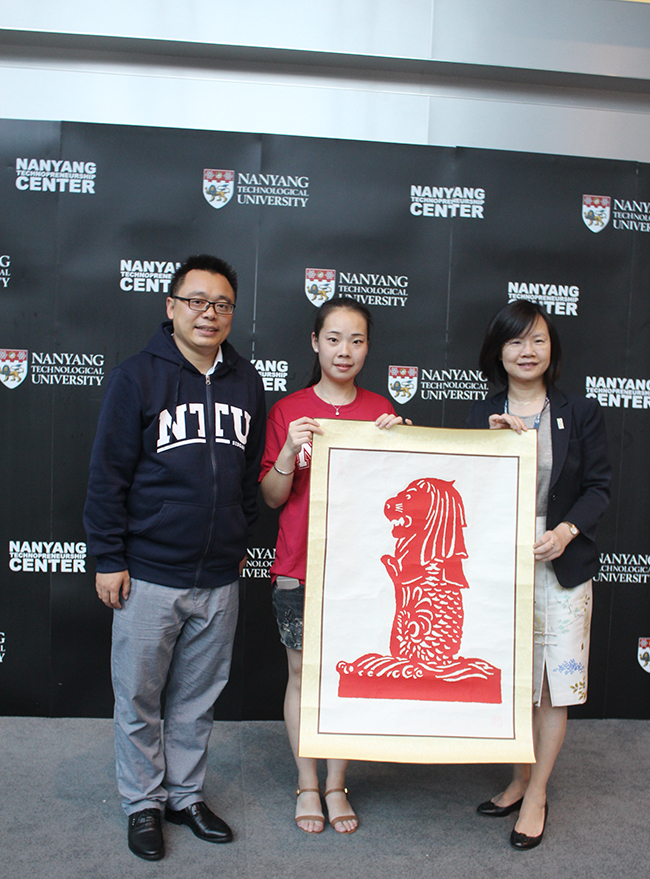 翟天麟同学代表学校向南洋理工大学赠送其非遗撕纸作品