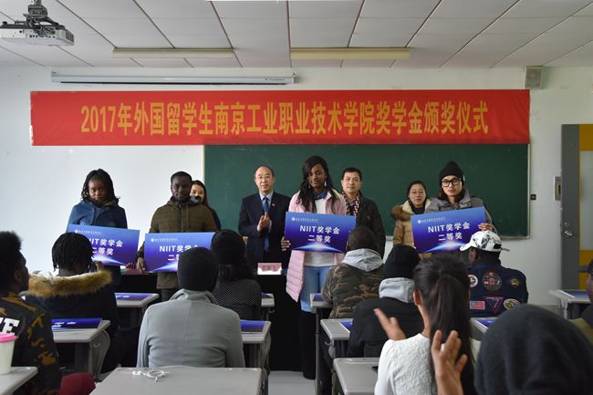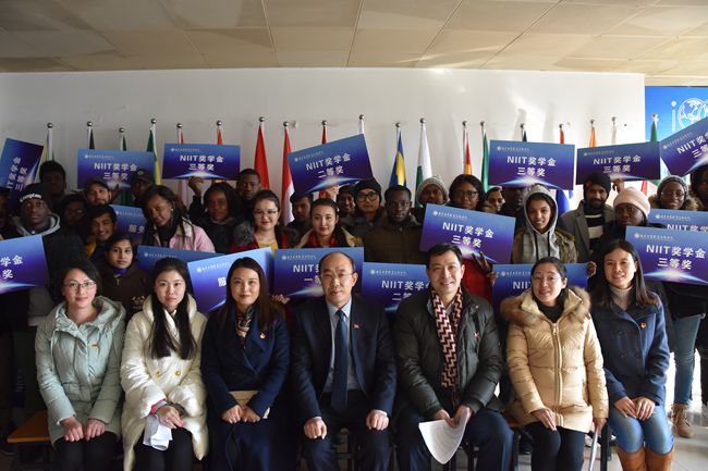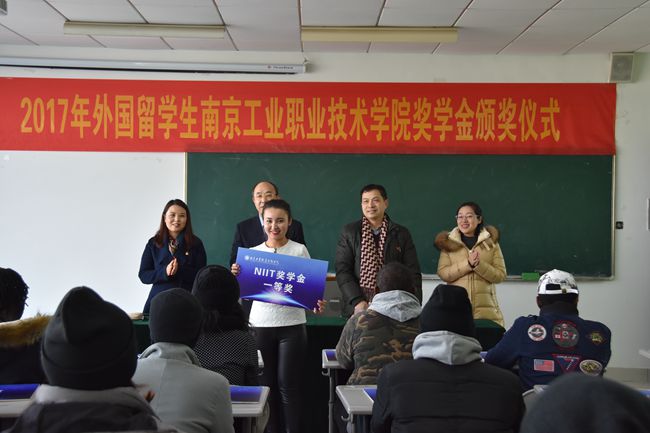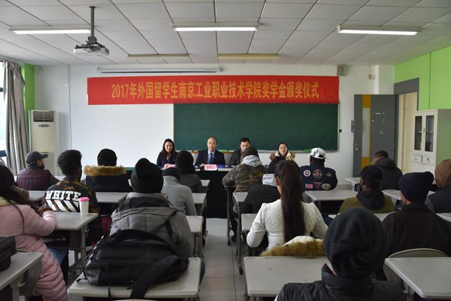 12月21日,best365官网2017年来华留学生“南工院奖学金”颁奖仪式在教一528教室隆重举行。学校霍雄飞副校长受邀出席了典礼。国际教育学院全体教师、留学生班主任及40名外国留学生代表参加了颁奖仪式。颁奖仪式由国际教育学院党总支书记、院长赵秋主持。