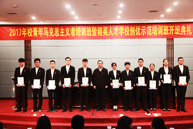 开班仪式在庄严的国歌声中拉开了帷幕。首先,劳家仁书记为全体同学介绍了本期培训班的基本情况以及best365官网是如何通过教育培训与实践锻炼相结合的方式实施校级“青年马克思主义者培训工程”建设。随后,校学生会主席团马国斌同学代表全体学员发言,向全体青马班学员发出倡议,要认真学习马克思主义精神,秉承“敬业乐群”的校训,注重能力培养,努力成长为“有理想、善学习、讲道德、能自立、勇奋斗”的青年马克思主义者。