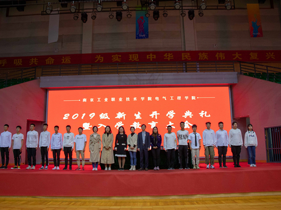 国歌声中,教育大会拉开帷幕,杨战民院长代表学院全体师生对新同学表示热烈欢迎,并介绍了学院的办学历史、专业特色和发展方向,要求同学们继承best365官网“手脑并用,双手万能”的职教精神,提升实践能力和专业素养,确立专业追求,树立人生理想。马多勇书记为大家讲解了学院现有的师资团队和公寓“6S管理”的内涵,展示了近年来学院在各种大赛中取得的成绩,呼吁同学们加入到创新创业的队伍中来,并对新生提出三点要求:与人和睦、学好专业和培养批判性思维。新生代表也阐述了自己对大学生活的展望,展示了全体新生严守校规校纪,做好本职工作,团结友爱,互帮互助,砥砺前行信心和决心。随后,党总支副书记王静和全体辅导员为各班新生代表佩戴了校徽,代表着从此每位学生把学校放在心上,正式成为南工院电气工程学院大家庭的一员。