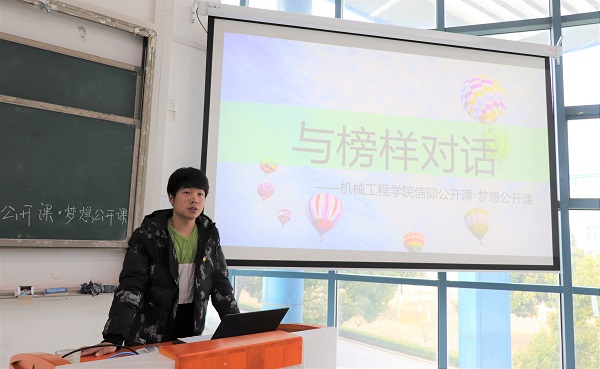 为进一步学习贯彻习近平新时代中国特色社会主义思想,激励广大青年学生在青春年华里为梦想不断奋斗。12月18日中午,在乐群楼J1303教室开展了本次与榜样对话——机械工程学院信仰公开课·梦想公开课活动,本次由谷旭楼、宋宾健同学担任主讲。