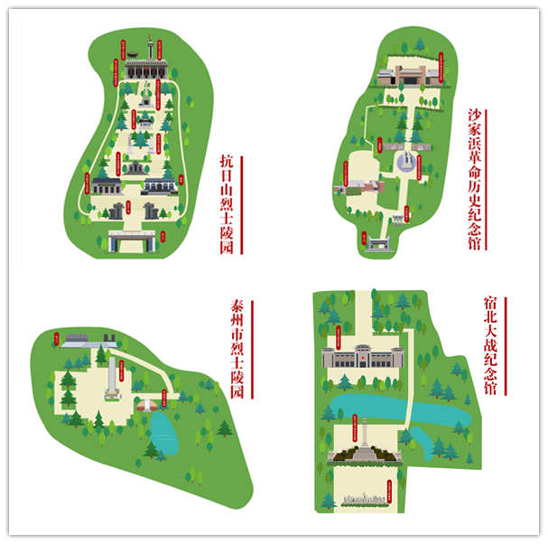 近日,由艺术设计学院“手绘红色地图寻访红色江苏”暑期社会实践团成员制作的江苏红色景点手绘地图新鲜出炉,雨花台烈士陵园、淮海战役烈士纪念塔园区、周恩来纪念馆、淮海战役碾庄圩战斗纪念馆、抗日山烈士陵园、沙家浜革命历史纪念馆、泰州市烈士陵园、宿北大战纪念馆等一幅幅生动的红色景点图,记录下那个战火纷飞的年代里,悄然流逝的峥嵘岁月。