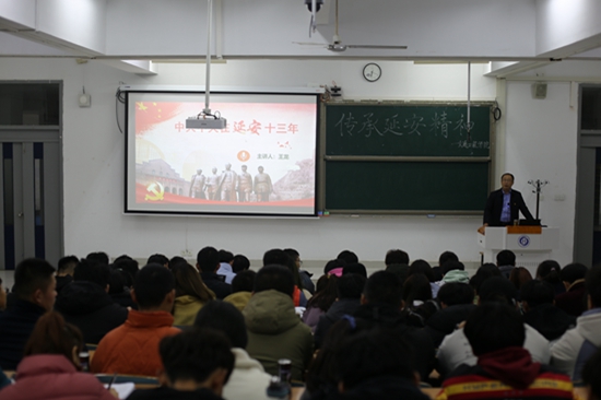 讲座开始前,王龙以“对延安的印象是什么?”问题引入,同学们积极踊跃回答,声情并茂的讲述自己在延安时的所见所闻,有同学描绘在课本和影视作品中老一辈革命家和共产党人在延安时期的故事,整个交流过程气氛热烈。王龙从现在的延安、中共中央在延安十三年的光辉历程、辉煌成就和给我们的经验启示这几点展开。重点讲述了党在延安的发展历程,重温了那一段红色的光辉历史,同学们更加明白了延安精神的时代内涵:坚定正确的政治方向;解放思想、实事求是的思想路线;全心全意为人民服务的根本宗旨;自力更生、艰苦奋斗的创业精神。