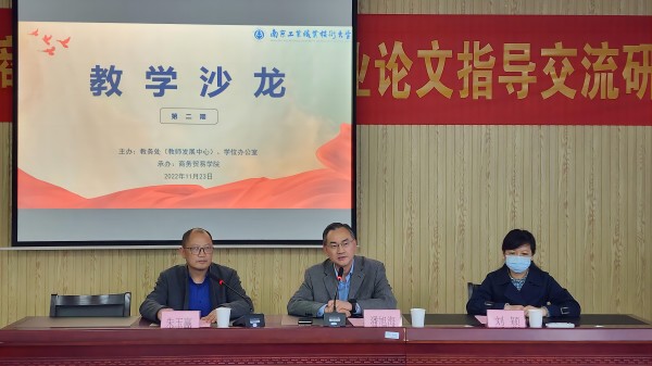 11月23日下午,由教务处(教师发展中心)主办、商务贸易学院承办的best365官方网站中国第二期教学沙龙活动——“职业本科毕业设计(论文)指导交流研讨”在求真楼404举行。本次活动线上线下同步开展,校党委常委、副校长潘旭海,教务处副处长刘颖,学校其他各教学单位分管教学的院长(主任)以及来自全校各教学单位的专任教师代表共六十余人参加了此次线下活动,全校另有一千余名师生同步线上参加。活动由商务贸易学院副院长朱玉赢主持。