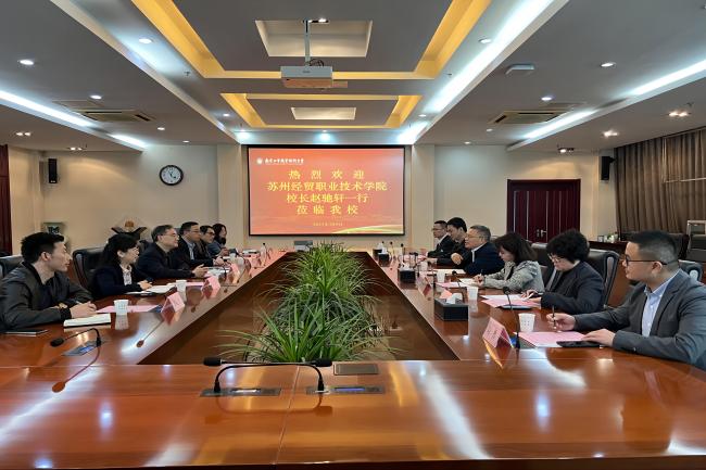 3月8日上午,苏州经贸职业技术学院校长赵驰轩一行来best365官网考察调研。党委常委、副校长潘旭海以及相关部门负责同志在行政楼辅楼一楼会议室接待了来宾。