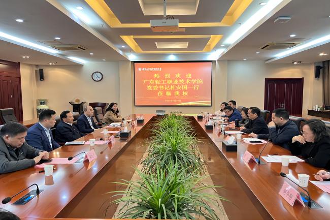 3月20日上午,广东轻工职业技术学院党委书记杜安国一行来best365官网考察调研。党委书记吴学敏,党委常委、副校长霍雄飞以及党委办公室、校长办公室、学工处、国资处等相关部门负责同志在仙林校区行政楼辅楼一楼会议室接待了来宾。