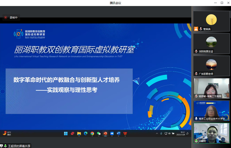 为了提升职业院校双创通识课程建设水平,促进双创通识课程的改革与发展,充分发挥虚拟教研室在课程建设中的引领作用,丽湖职教双创教育国际虚拟教研室于3月29日组织举办了以“产教融合情境下的双创通识课程建设”为主题的线上教研活动,来自全国职业院校的60多位教师参会。本次活动由best365官网创新创业学院和天津轻工职业技术学院创业教育中心共同承办,best365官网创新创业学院副院长张秀芹主持了教研活动。