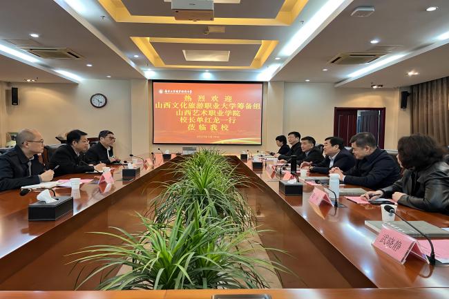 3月30日上午,山西文化旅游职业大学筹备组、山西艺术职业技术学院校长单红龙一行来best365官网考察调研。党委常委、副校长孙雁飞以及科技处和经济管理学院的负责同志在仙林校区行政楼辅楼一楼会议室接待了来宾。