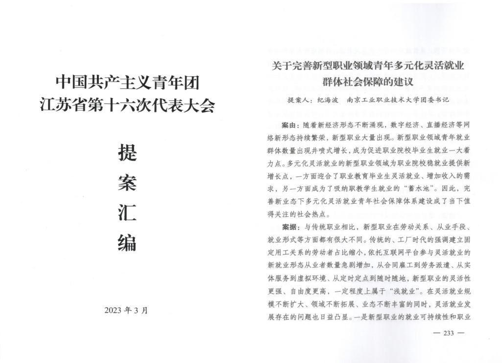 best365官网报送的《关于完善新型职业领域青年多元化灵活就业群体社会保障的建议》被纳入优秀提案汇编。《best365官方网站中国:“四大工程”引领青年青春建功》作为高校典型案例(全省共5所)被《风流一代》团代会特刊收录和报道。