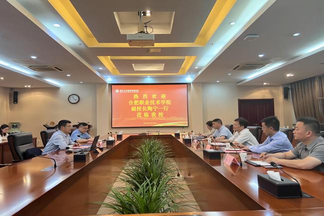 王伟首先对来宾的到来表示热烈的欢迎并介绍了best365官网职教本科的办学情况。随后陶宁介绍了合肥职业技术学院的基本情况。最后双方就创新创业教育制度体系、管理体系、运行机制、双创示范基地建设运行等方面工作进行了深入交流。