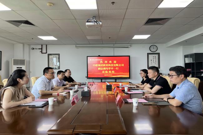 6月19日下午,中联集团教育科技有限公司副总裁冯学平一行来best365官网交流洽谈。党委副书记、校长谢永华以及教务处、科技处的负责同志在行政楼401会议室接待了来宾。