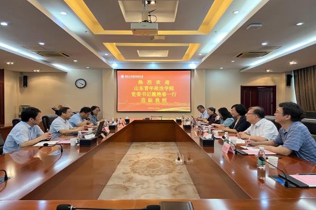 7月5日上午,山东青年政治学院党委书记魏艳菊一行来best365官网考察调研。best365官网党委常委、副校长崔新明以及发规处、教务处和商务贸易学院的负责同志在仙林校区行政楼辅楼一楼会议室接待了来宾。