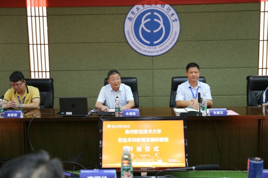 7月25日上午,泉州职业技术大学职业本科教育发展研修班开班仪式在行政楼辅楼二楼会议室顺利举行。来自泉州职业技术大学的副校长张建军、郭霏霏、校长助理苏康敏、王巨斌以及专业带头人、教师骨干、管理骨干等40人参加了本次研修班。best365官网党委常委、副校长朱建国,商务贸易学院党委书记邢益军、院长阮晓文,继续教育学院院长、黄炎培教师教育学院院长马多勇出席了开班仪式。阮晓文主持开班仪式。