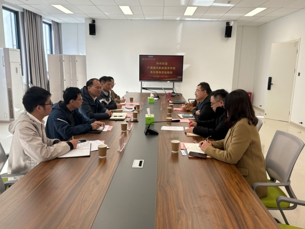 会后,广西现代职业技术学院创新创业学院一行参观了学校双创大楼。