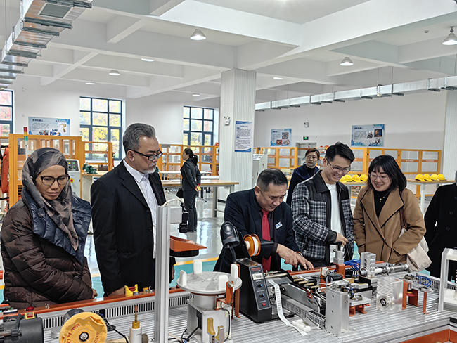 哈希姆感谢学校热情接待,他着重介绍了马来西亚职业教育的发展体系、办学特点、教育理念和发展愿景和吉隆坡直辖区相关教育机构的基本情况。马来西亚政府通过制定职业技术教育转型计划和教育发展蓝图等国家政策,不断强化职业技术教育发展的政策保障与资金支持。通过对职业技术教育的支持,培养具有优秀道德、技术娴熟、知识丰富、具有营销和创业能力的高素质劳动力。他表示,吉隆坡直辖区非常重视职业教育,制定了“提高收入、提升企业家竞争力、提高人文素养、倡导终生学习和培训专业技术”的职业技术教育五大目标。近年来,政府不断加大投入,期待能与best365官网在师资培养、专业共建、教师研修、学生研习和境外办学项目拓展等方面进一步深化合作。