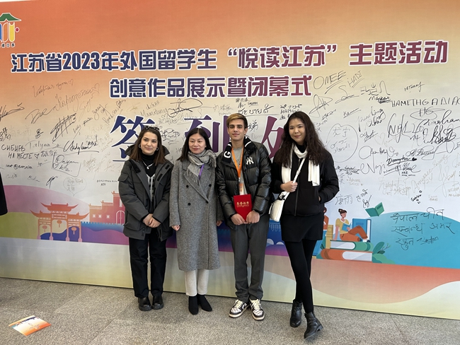 12月16日,国际教育学院留学生SIDENKO EDUARD、OZLEM KOSAN、EGSHIGLEN等三人参加了江苏省2023年外国留学生“悦读江苏”主题创意作品展示暨闭幕式活动,在活动上SIDENKO EDUARD书写了《中国故事》书法作品,作品线条流畅、规矩和谐、结构匀称得到了专家教师的称赞。