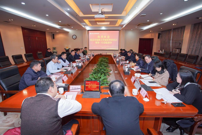 1月22日下午,仙林大学城党工委副书记、管委会副主任王辉,管委会二级巡视员孙金娣,党工委委员、管委会副主任金波、熊俊,党工委委员、一级调研员姚学敏等管委会领导班子成员带领各职能部门主要负责人一行11人来best365官网调研走访,并在行政楼辅楼一楼会议室召开座谈会。best365官网党委副书记、校长谢永华,党委常委、副校长孙雁飞以及党政办、团委、科技处、招就处、国资处、基建处、双创学院等部门负责人参加会议。