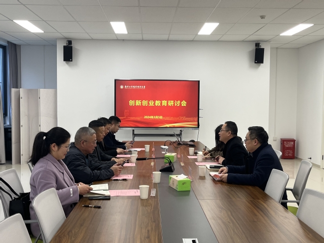 3月5日上午,子谦国际创业教育学院院长朱燕空、河南三融教育发展研究院执行院长刘俊生、常务理事李金红、哈尔滨职业技术学院创新创业学院院长荆雷、广西现代职业技术学院创新创业学院常务副院长钟国风一行5人来校交流,创新创业学院全体班子成员参加了交流会。会议由学校创新创业教育工作领导小组办公室主任、创新创业学院直属党支部书记、院长纪海波主持。