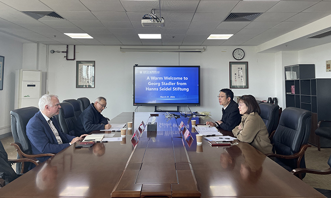 3月21日,德国汉斯·赛德尔基金会上海与西部地区首席代表施泰德(Georg Stadler)先生一行2人来访best365官网。校党委常委、副校长孙雁飞接待了来宾,国际处负责人参加了会见。