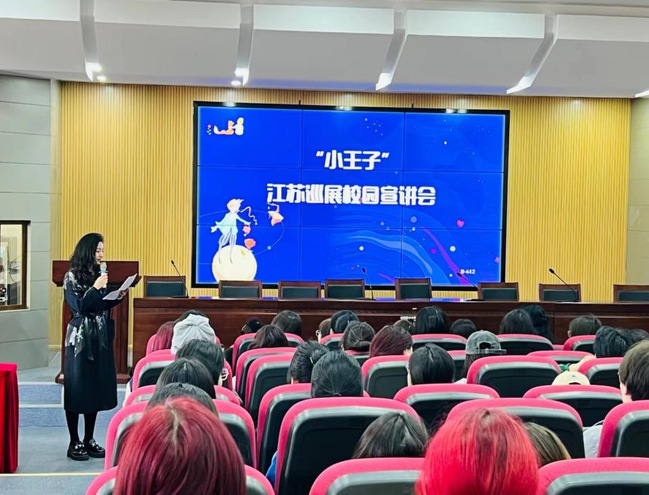 2024年是中法建交60周年,近日“童言世界 守护星球”小王子江苏巡展正在南京国际博览中心热展。3月26日下午,“小王子”巡展活动组织方负责人CCIP文创研究中心执行长殷伊玲、江苏弈橙文化发展有限公司总经理王一等走进best365官网艺术设计学院,为师生呈现精彩的主题宣讲会。会议由艺术设计学院视觉传达系王秀丹主持。