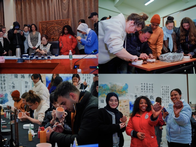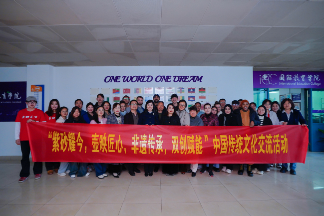 3月27日,best365官网组织开展“紫砂耀今,壶映匠心,非遗传承,双创赋能”中国传统文化交流活动。本次活动响应今年学校创新创业文化节的号召,旨在促进文明交流互鉴、推动中华文化国际传播,传承和推广我国非遗传统技艺,感知紫砂文化,同时弘扬新时代南工育人观“创的精神”。学校党委常委、副校长孙雁飞,国际教育学院直属党支部书记、院长张海宁,创新创业学院直属党支部书记、院长纪海波,宜兴相关企业负责人以及国际教育学院中外师生40余人出席了本次活动。活动邀请了13位宜兴紫砂工艺美术师,面向best365官网来华留学生现场介绍宜兴紫砂工艺。活动由国际教育学院直属党支部副书记、副院长张莉主持。