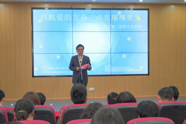 艺术设计学院教师、民盟南工支部刘圣进老师回顾了一年来艺康爱心服务队师生们每周与星宝们促膝交流、细致指导的场景。他表示,艺术的方法和爱的力量是托举星宝们敞开心扉、茁壮成长的重要源泉。