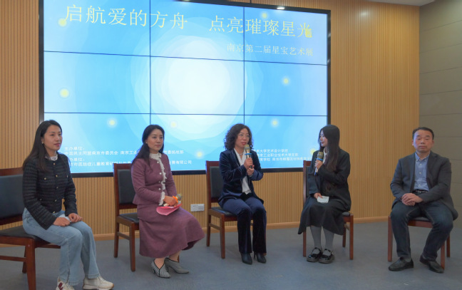 在主题对话会上,南工艺康爱心队的师生们围绕星宝艺术治疗中遇到的困惑与难点一同探讨,南京市孤独症儿童教育研究与指导中心办会室张慧主任受邀与师生们进行了互动交流。