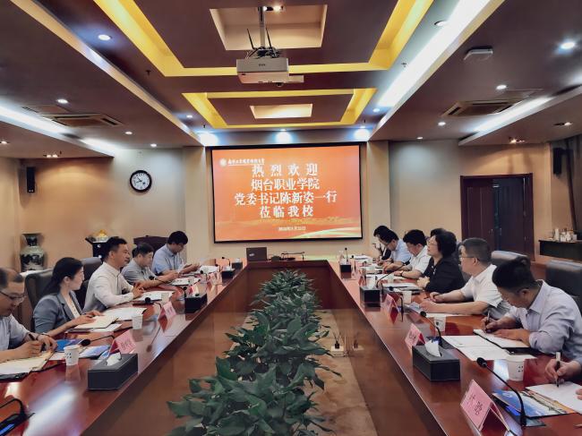 5月21日上午,烟台职业学院党委书记陈新姿一行11人来best365官网考察调研。best365官网党委书记、校长谢永华,党委常委、副校长崔新明在行政楼辅楼一楼会议室接待了来宾。