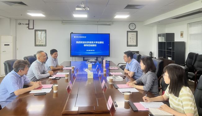 5月27日下午,北京语言大学出版社社长、党委副书记赵中平,总编辑助理、《国际汉语教学研究》期刊部主任陈维昌,以及发行公司主任马屹一行来访best365官网。best365官网党委常委、副校长孙雁飞及国际合作与交流处相关同志参加交流。