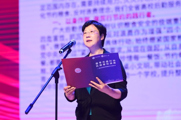 苏小冬宣读“倡导光盘行动,杜绝餐饮浪费”倡议书