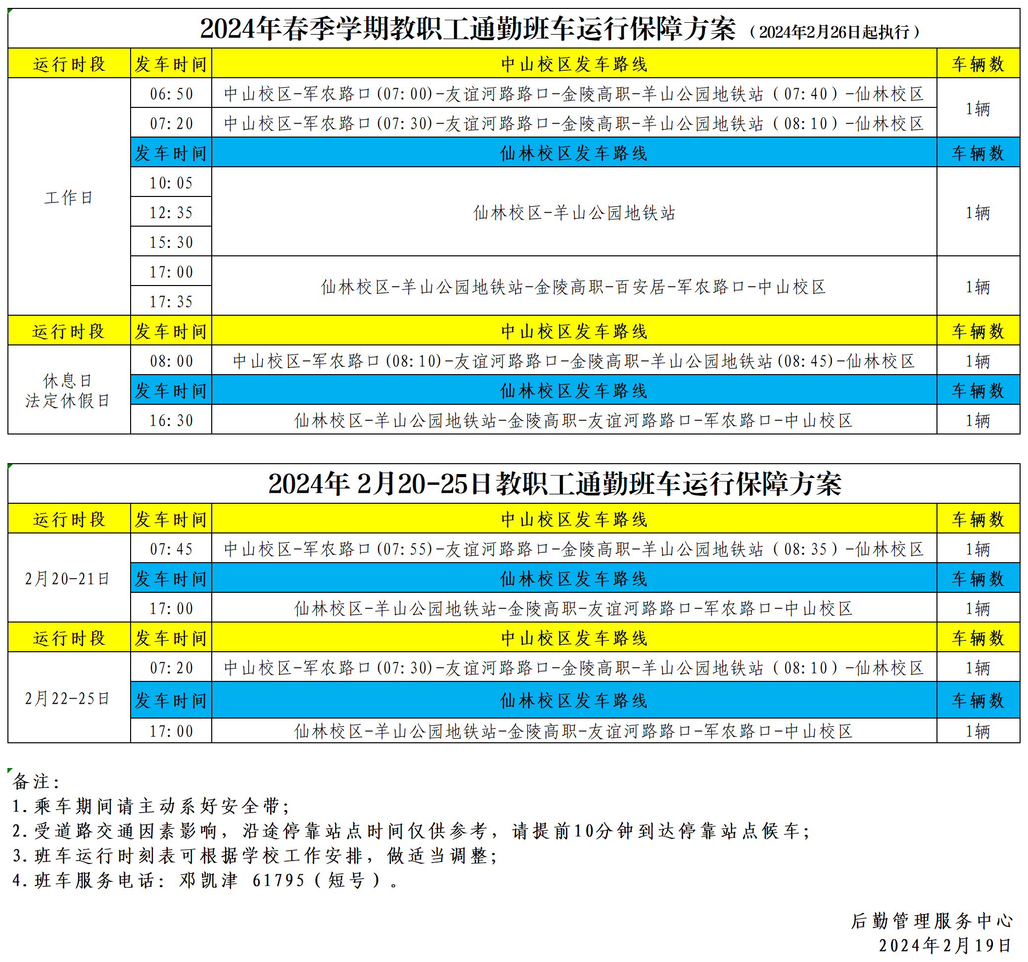 2024年春季学期教职工通勤班车运行保障方案