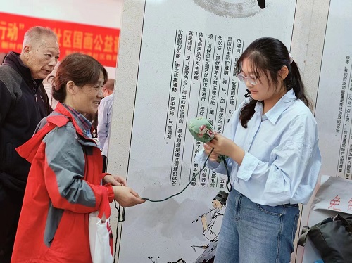 活动现场,志愿者们还为老人们普及了艾草锤的文化传承知识和健康功效,详细介绍了艾草锤的制作方法。在志愿者的指导下,社区老人们纷纷加入了现场制作。有的老人手法娴熟,很快就把艾草包包裹好;有的则稍显生疏,但在志愿者的帮助下,也渐渐找到了节奏。整个制作过程中,老人们相互交流,切磋手法与技巧。弥漫着艾草的清香空气中,荡漾着浓浓的爱老助老温馨。