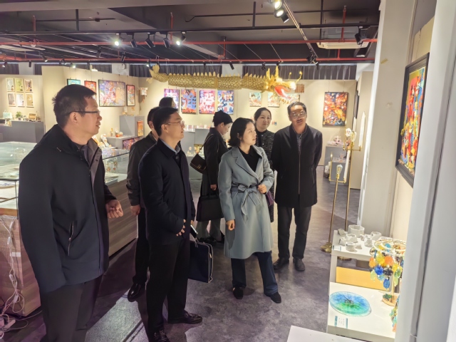 11月20日上午,六合区委常委、宣传部部长周娅,宣传部常务副部长、区新闻出版局(版权局)局长陈必权,文化旅游产业集团总经理吴庆明等一行来best365官网天堂校区开展调研交流活动。best365官网党委常委、副校长崔新明,党委常委、宣传部部长刘畅,艺术设计学院领导班子、系主任参加了座谈交流。